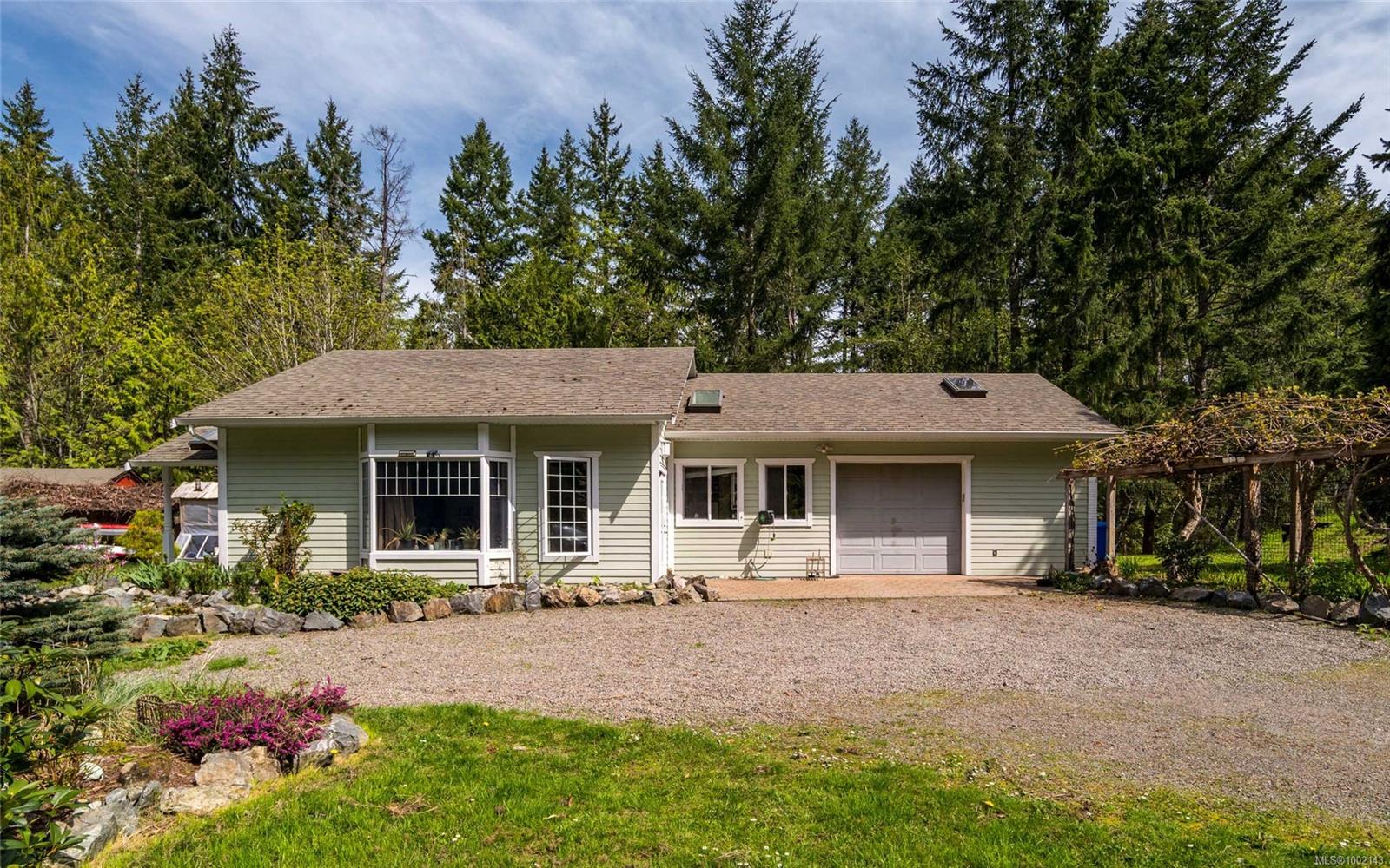 Motivated Seller! An opportunity to own two separate LEGAL homes on a private 2 acre property that is this peaceful, has this much separation between the homes & with this location, is a rare find. Within quick & easy walking distance to Masons Beach, Dougan Park, Shawnigan Village, Wharf Park & the Black Swan-your options for water & land activities here are effortless & endless. With separate driveways, plenty of parking, amazing outdoor spaces & bountiful producing fruit trees & plants-this is a great income property, intergenerational purchase or group buy. Main home offers 2693 sq.ft of living space with 5 beds and 4 baths which includes a primary suite on each floor for flexible accessibility. Then the super spacious 1053 sq.ft wheelchair accessible rancher features 1 bed + den, vaulted ceilings, oversized garage with EV charger h/u & 3pc ensuite bath. Whether you're looking for an excellent revenue property, home with a mortgage helper or a quiet place to call home, this is it.
