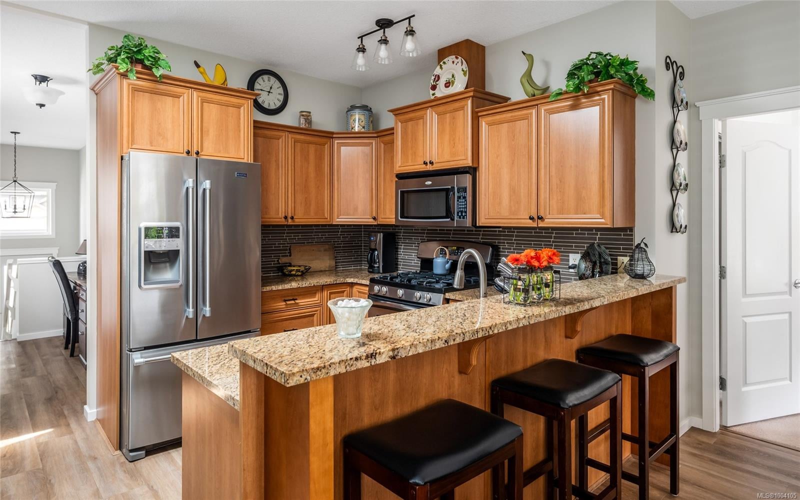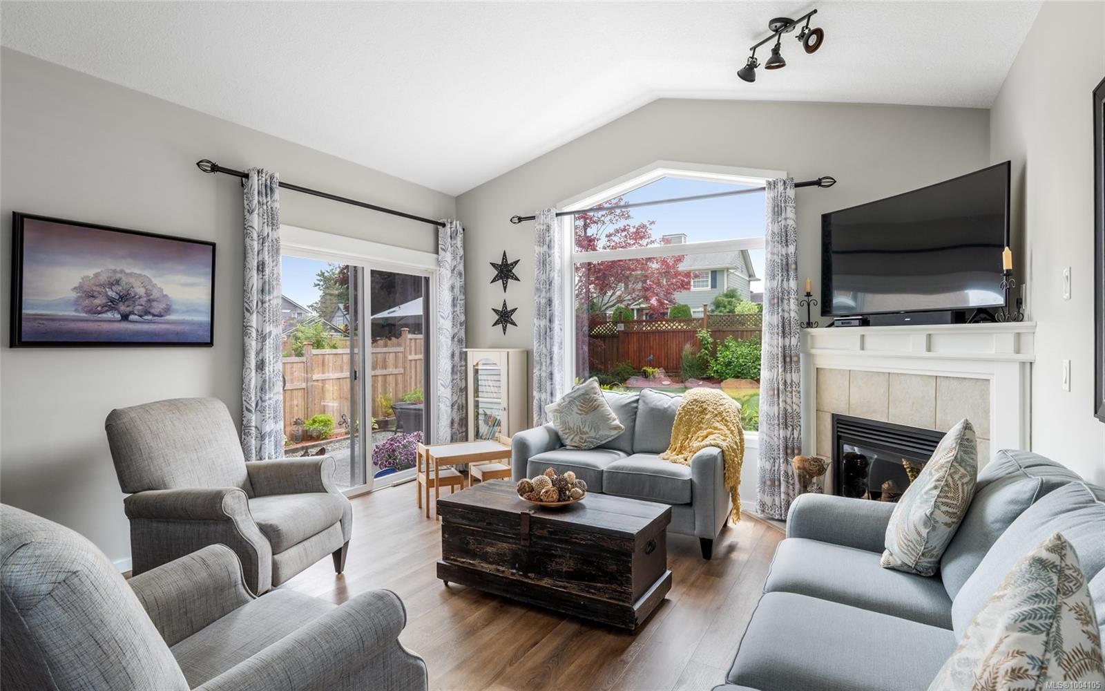 On a quiet no-through road just steps from walking trails, top schools, transit & daily amenities, this pristine & updated 4 bed, 3 bath home blends comfort with quality. Ideal for families or downsizers alike, the main level offers newer stylizing flooring, a gorgeous kitchen with granite counters & gas range, opening to a vaulted living room with gas fireplace & the dining area. The primary bedroom features a walk-in closet & spa like ensuite, plus there's a guest bed, 2pc bath & office nook on this floor as well. Downstairs you'll find a huge rec room with a 2nd gas fireplace, 2 additional bedrooms, a 4pc bath & ample storage. Enjoy the comfort of a 2.5-year-young heat pump & furnace, newer hot water tank, fresh interior/exterior paint & updated appliances. Outside, the fully fenced, landscaped backyard with irrigation is perfect for relaxing or entertaining with family and pets. This energy-efficient, move-in ready home has a lot to offer, including a flat driveway & double garage.