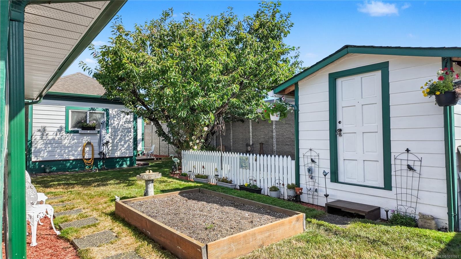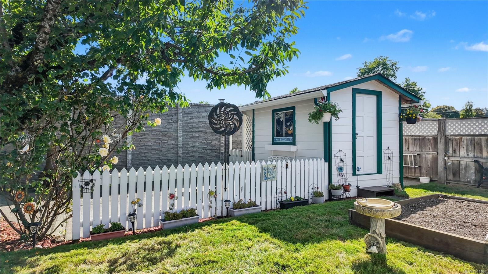 Balcony/Deck, Balcony/Patio, Central Location, Easy Access, Fenced, Fencing: Full, Garden, Ground Level Main Floor, Landscaped, Level, Low Maintenance Yard, Primary Bedroom on Main, Recreation Nearby, Shopping Nearby, Sidewalk, Storage Shed, Workshop
