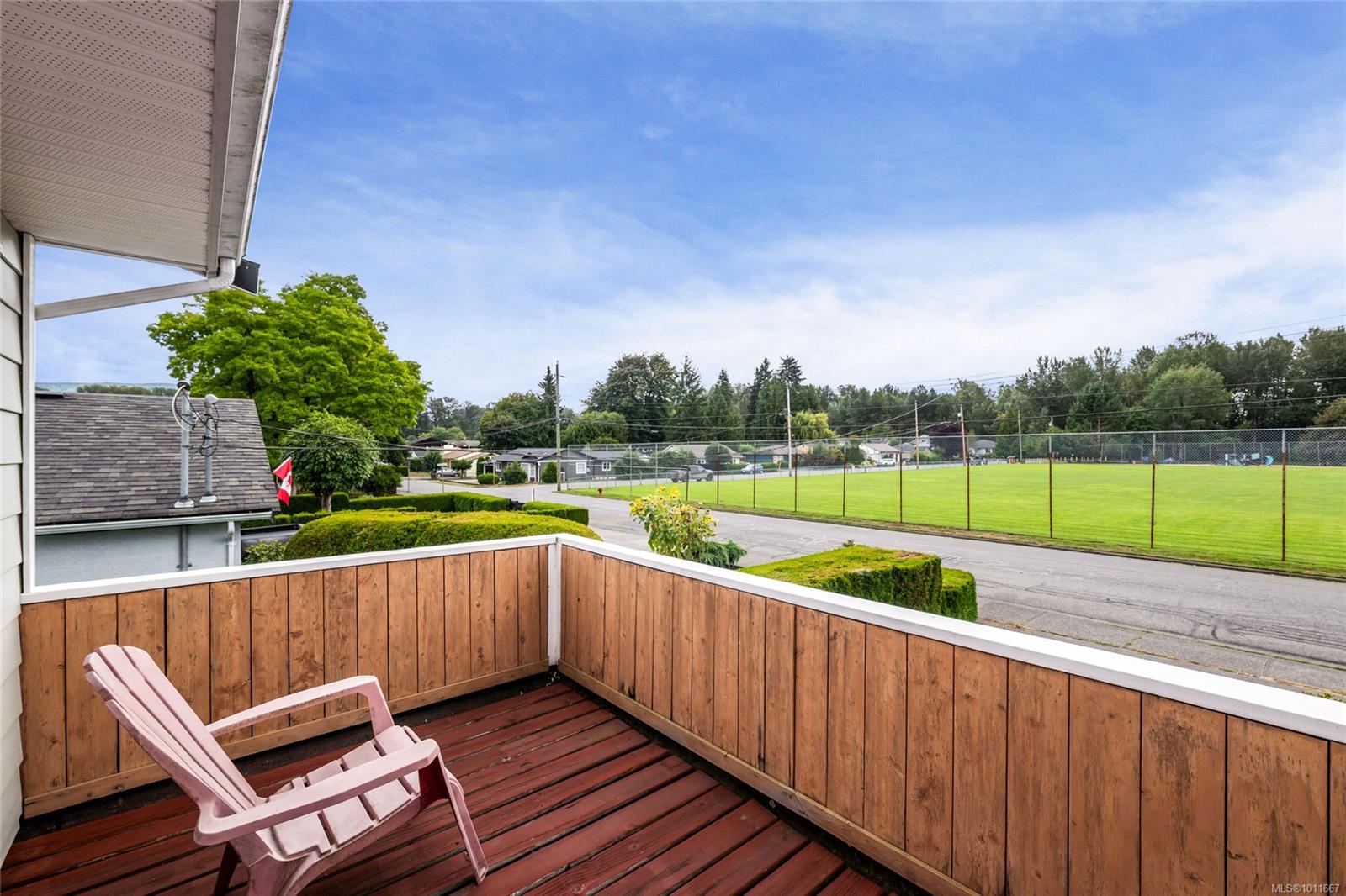 This beautifully maintained & updated family home offers 4 beds(option for a 5th), 2 baths & 2508sqft of living space in a quiet, family-friendly area with long term neighbours. Enjoy immediate access to endless walking trails including a serene riverside walk, as well as parks, playgrounds, sports courts/fields, transit & minutes walk to all downtown amenities, shopping, pool, library & schools. This home overlooks the football field, adding to the sense of space & privacy. Hardwood floors, vinyl windows, heat pump, hardie siding, interior updates & more. The beautiful, private, fully fenced backyard is ideal for families & entertaining with its gazebo, firepit & gardens - plus zoning that also allows for a carriage house. Main floor offers a spacious living room, dining area, kitchen with deck & backyard access, den or 3rd bed, 4pc bath & 2 bedrooms. Downstairs has a rec room, bedroom, renovated 3pc bath, laundry room & a workshop with outside access for easy in-law suite potential.