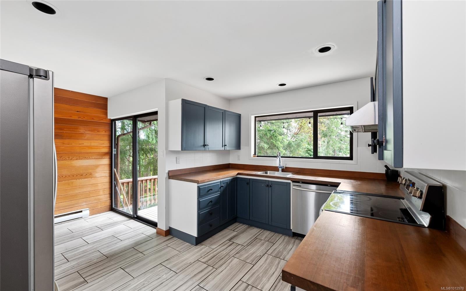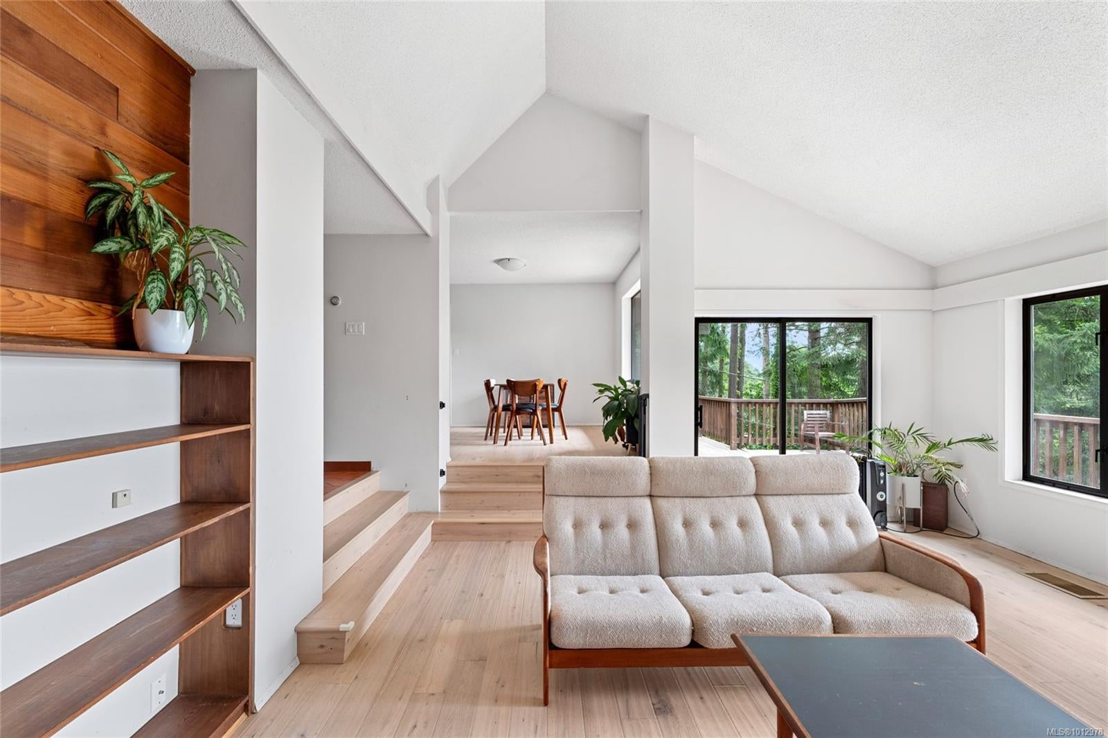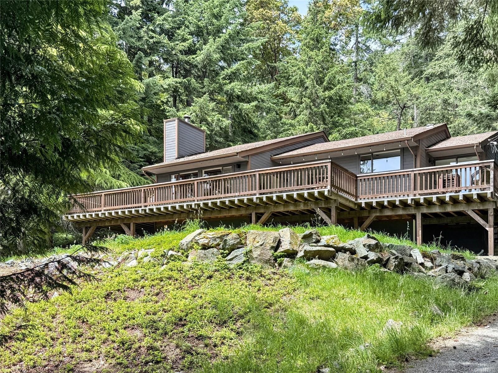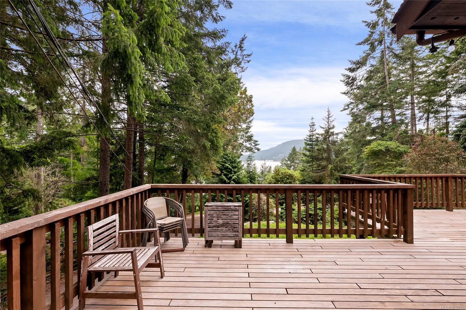 West coast home with breathtaking ocean & mountain views in the heart of Maple Bay. With design & function in mind this remodelled 2 bed + den, 2 bath 1670sqft home rests on a captivating & private 0.59acre lot in a natural setting on Maple Mtn. Featuring modernized charm with updated exterior/interior paint, engineered flooring, post & beam deck, modern fixtures, wood accents, updated bathrooms & stylish kitchen. There is a cozy sunken living room w/fireplace, dining area, breakfast nook, kitchen & primary w/ensuite - all with south facing ocean views & deck access. The 2nd bed, 4pc bath, den & laundry room complete the home & the over height crawl space makes storage easy. Outdoors offers room to expand the yard, garden, parking or even add a shop. Access from the road above for RV/boat parking may be possible for a very minimal fee: buyer to verify. Walk to beaches, hiking, trails & a short drive to restaurants, pub, marina & more. New attic insulation & more.