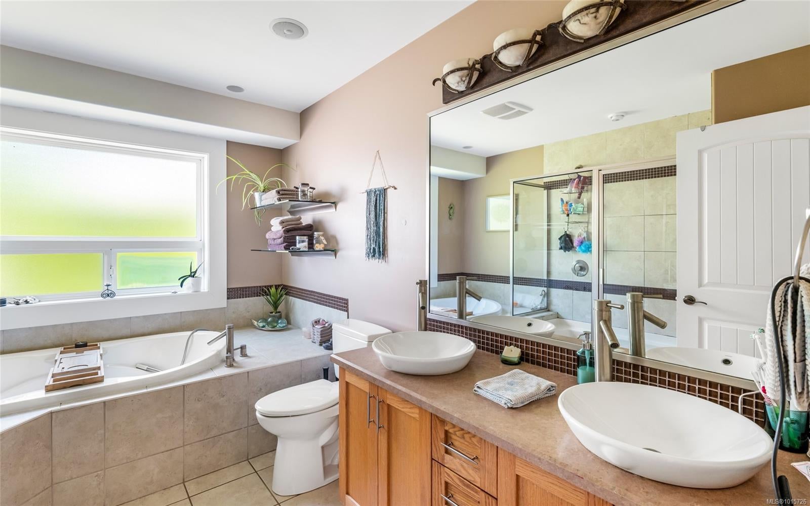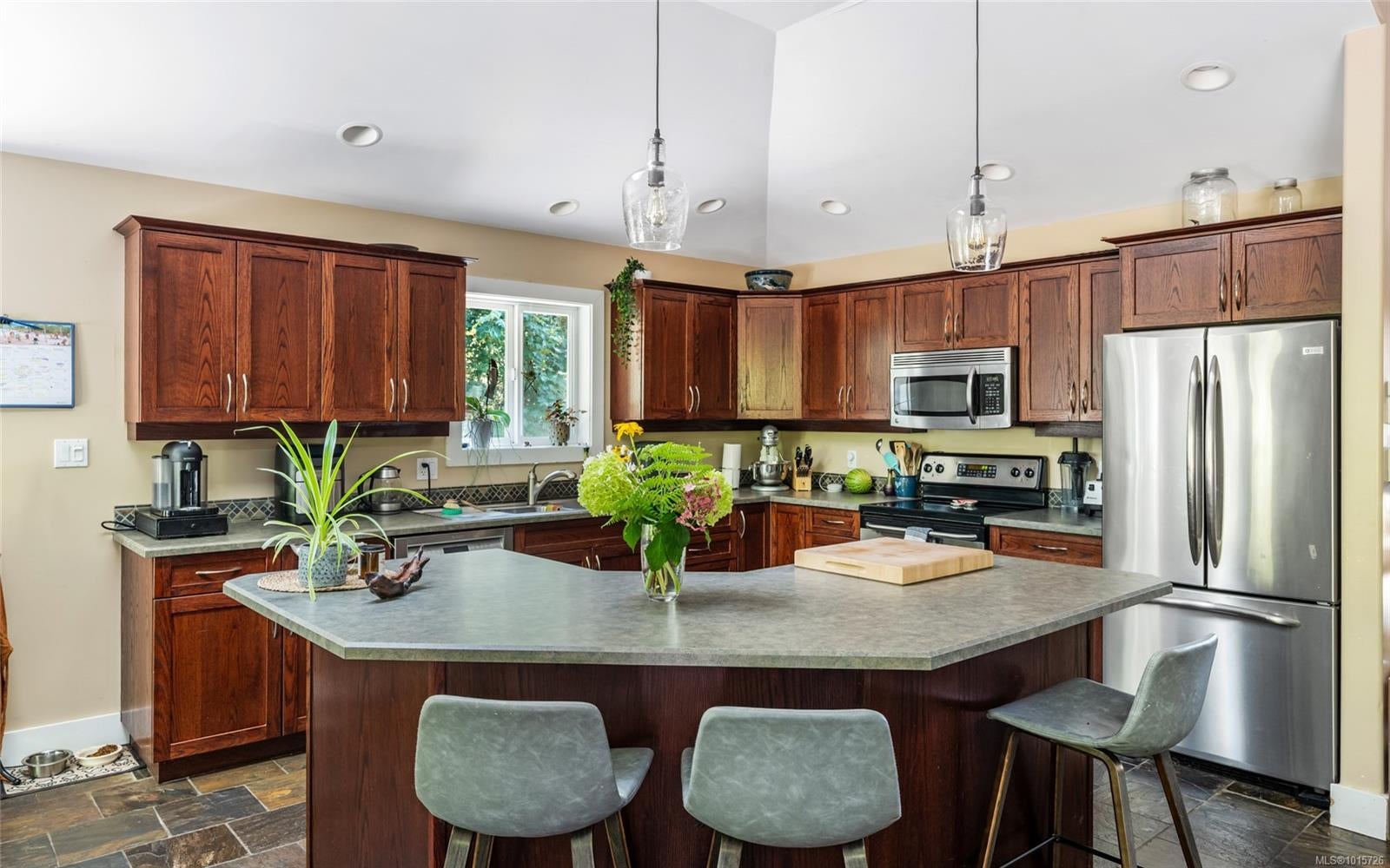 Welcome to your new Shawnigan Lake retreat! This spacious 3,128sq.ft. home with in-law suite sits on a private 0.37-acre corner lot, offering both tranquility & convenience. With 5 or 6 beds & 4 full baths, there's plenty of room for the whole family. Inside, you’ll find a bright main floor featuring vaulted ceilings, gas fireplace & spacious living areas which lead right out onto the brand new expensive deck for entertaining. Two secondary bedrooms, 4pc bath, laundry & a dreamy primary with 5pc ensuite complete this floor. The lower level includes a rec room, two more bedrooms & a 4pc bath, plus a fully self-contained 1 bed in-law suite with its own entrance & laundry. Outside, the backyard is a dream for kids & pets, and you get that extra buffer of common property behind you for added privacy. You’re just minutes from Shawnigan Village & the lake, making summer recreation & even commutes to Victoria a breeze. Newer 3 split heat pump, tankless gas hot water, workshop area & more!