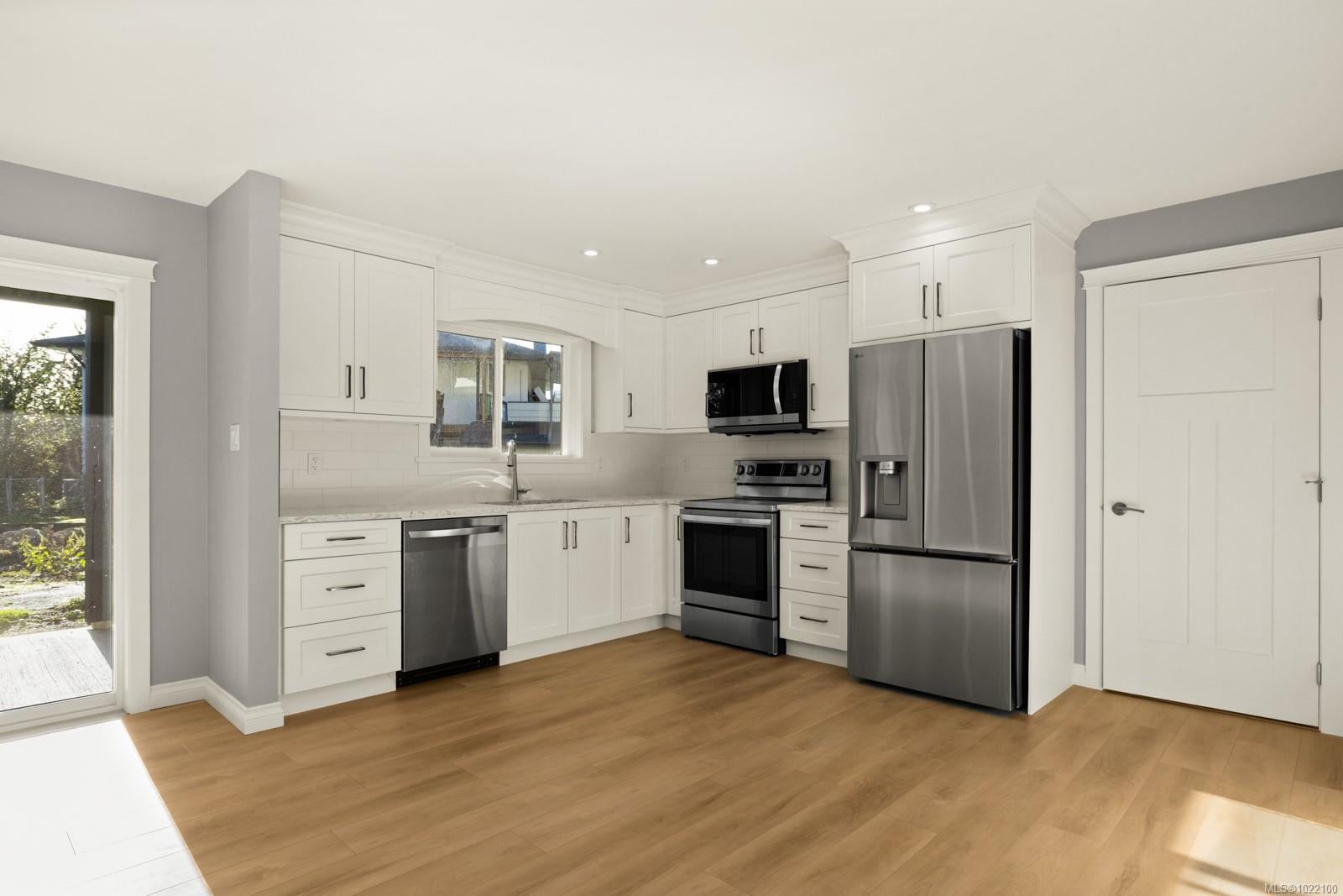 Stunning 2936sq.ft, 5 bed, 4 bath, brand-new home with a legal 2 bed suite tucked away on a quiet no-through road in a peaceful, friendly neighbourhood. Enjoy the best of both worlds with close proximity to parks, trails, recreation & everyday conveniences, while keeping that calm place to call home. Main home features 3 beds, 3 baths, with two of the bedrooms both offering walk-in closets & gorgeous ensuites. The open layout showcases high-end finishes, a gas fireplace, heat pump & seamless flow to a covered deck. Bonus! Quartz counters & all appliances are included in both the main home & suite. The suite has its own address & hydro meter, no stairs, spacious open layout, 4pc bath, storage, covered patio & 3 head ductless heat pump. A versatile bonus room works perfectly for either living space, plus there is an additional large storage room. An over-height garage, extra parking, sizeable backyard with fence coming soon & 2 high efficiency hot water tanks with lifetime warranties.