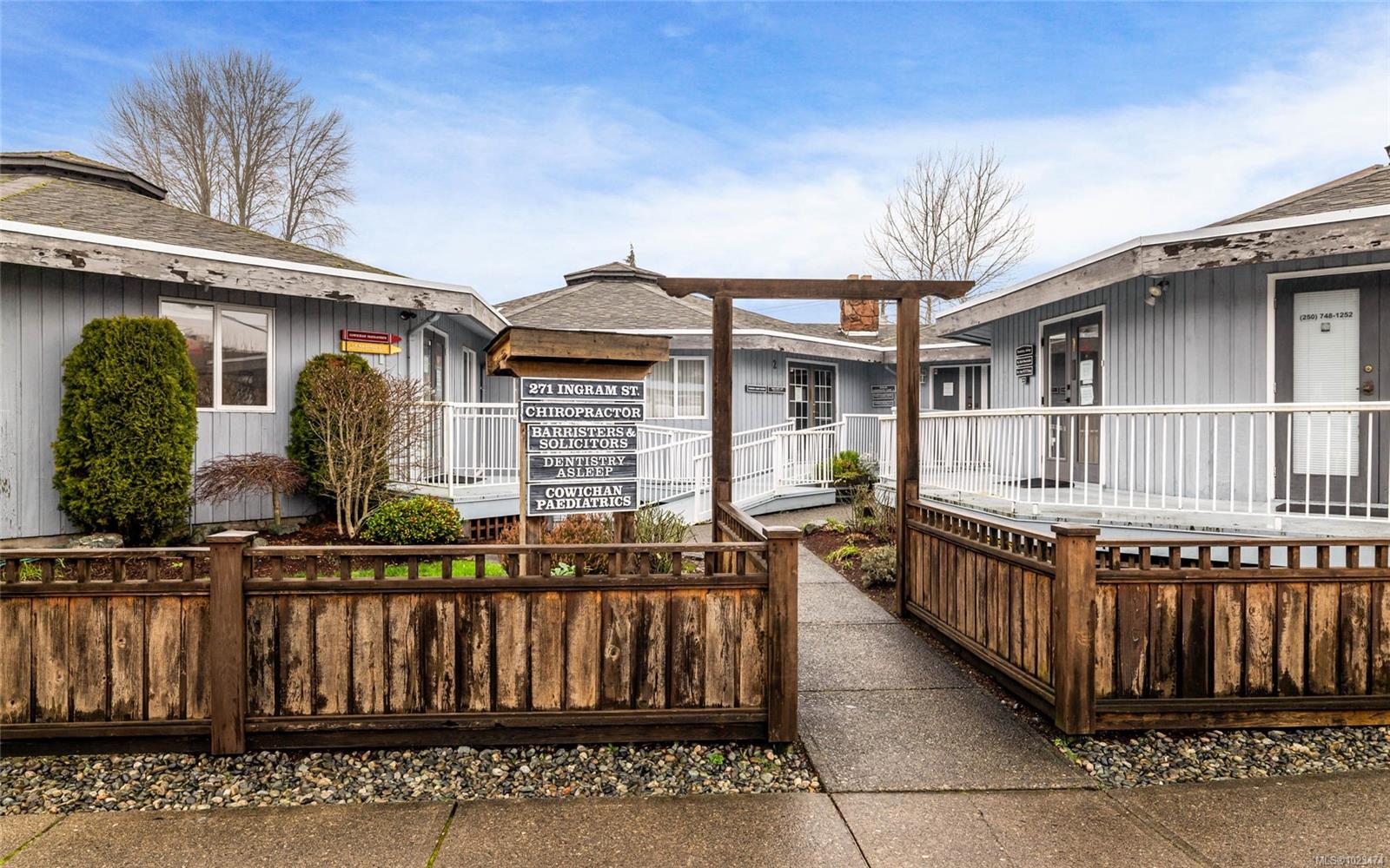 Prime Office Strata Unit for Sale – Ideal Owner-Occupier Opportunity. Own this charming 1,339 sq ft strata office in historic downtown Duncan, a growing area with limited office space available. Features include 4 private offices, boardroom, welcoming reception, kitchenette/staff area, plus a loft ideal as extra workspace with built-in desk and shelving. Fully self-contained for privacy, with rear entry and an accessible front entrance, 2 dedicated parking stalls, and ample street parking. Perfect for professionals choosing ownership over leasing, steps from shops, parks and amenities. The low strata fees of $300 per month includes hydro. Rare find—secure this attractive option for your business today. Measurements approximate; buyer to verify.