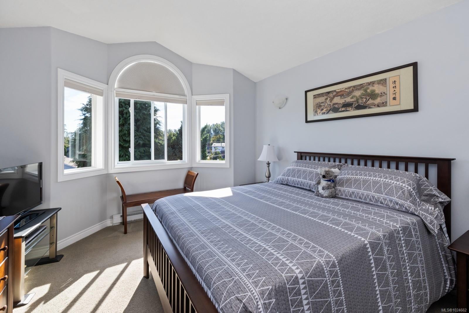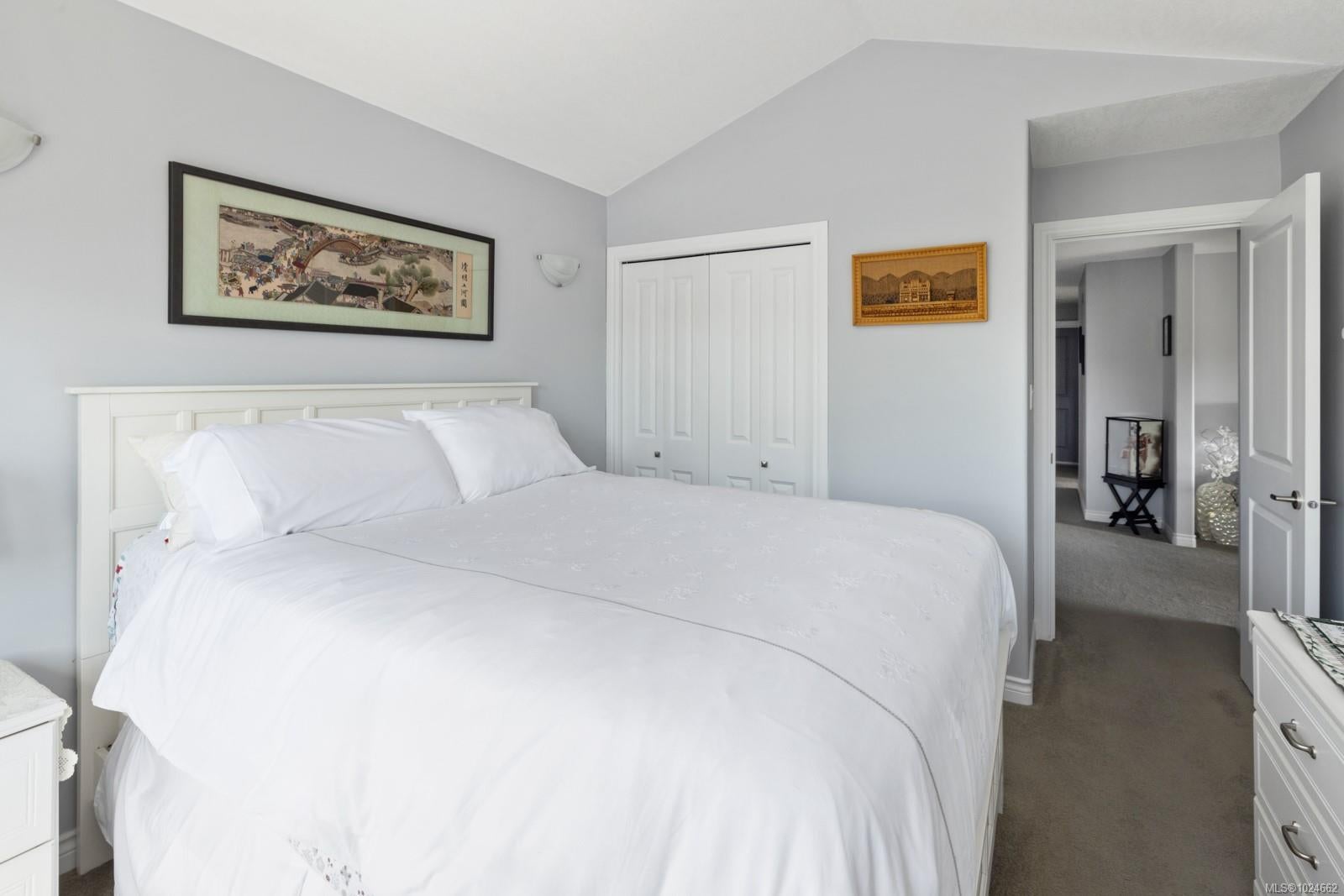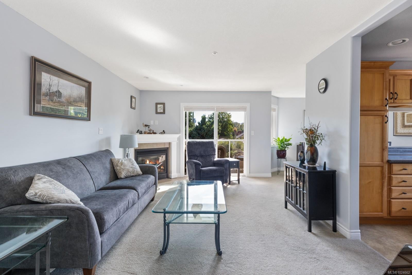 This top-floor corner unit is a rare opportunity in a beautifully maintained 55+ community. With 2 beds, 2 baths & 1084sqft. of sunlit living space, this condo sure is special. The original owners have thoughtfully updated it over the years: remodelled kitchen (2014) & brand-new appliances, both bathrooms redone in 2022, window coverings (2021), plus a lifetime-warranty hot water tank. Step inside & enjoy a spacious living room with a cozy gas fireplace, inviting dining area, handy office nook & a private deck for morning coffee or evening sunsets. Vaulted ceilings in the guest bedroom & primary suite create an airy, elegant feel, with the primary boasting a walk-in closet & gorgeous ensuite. One cat or small dog (under 22 lbs) permitted. Secure entry, elevator & one parking stall included. Steps from downtown, trails, & parks—ideal for walking or exploring with your dog. With reasonable strata fees & very low hydro and gas bills, this is one not to miss.