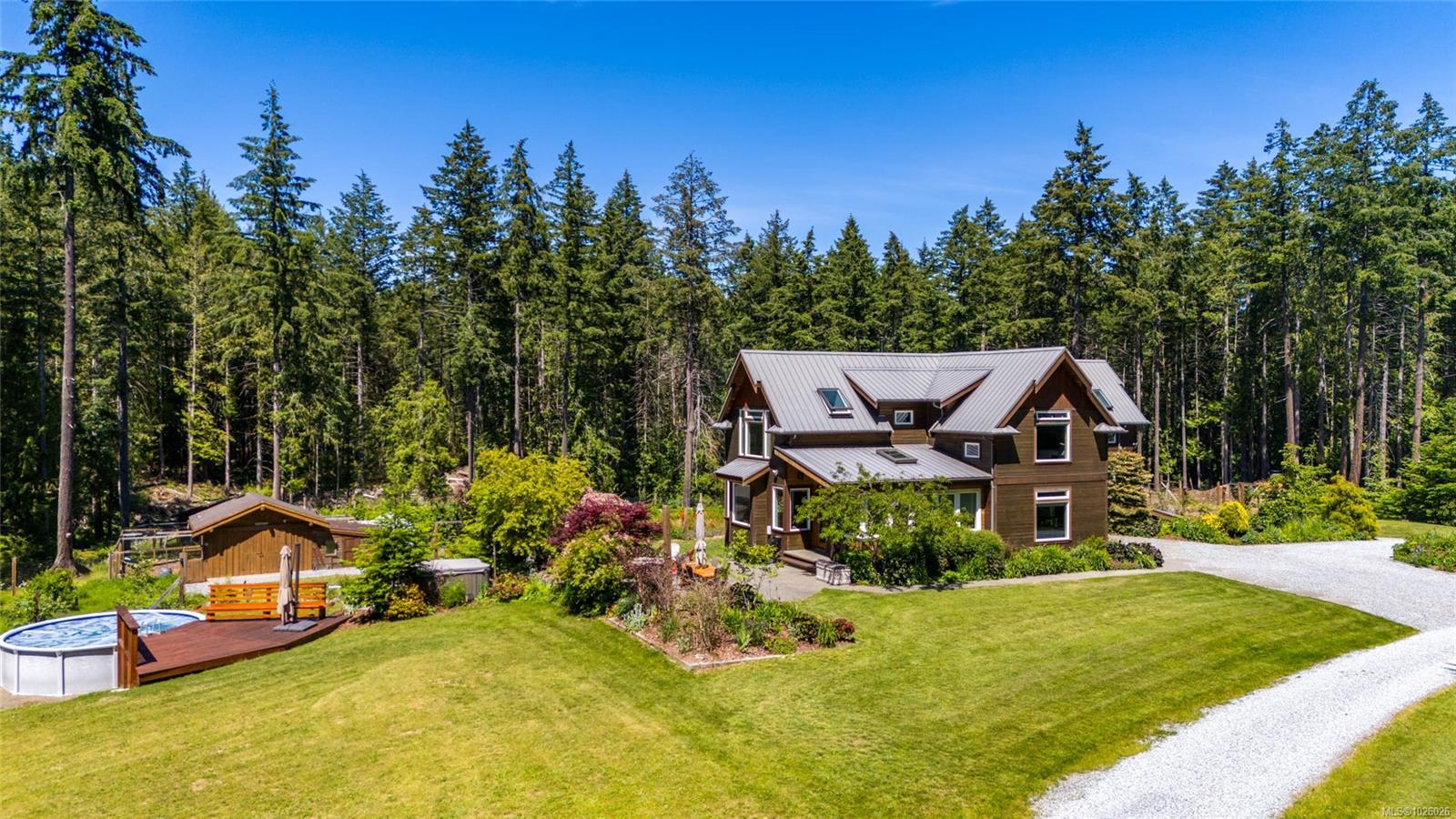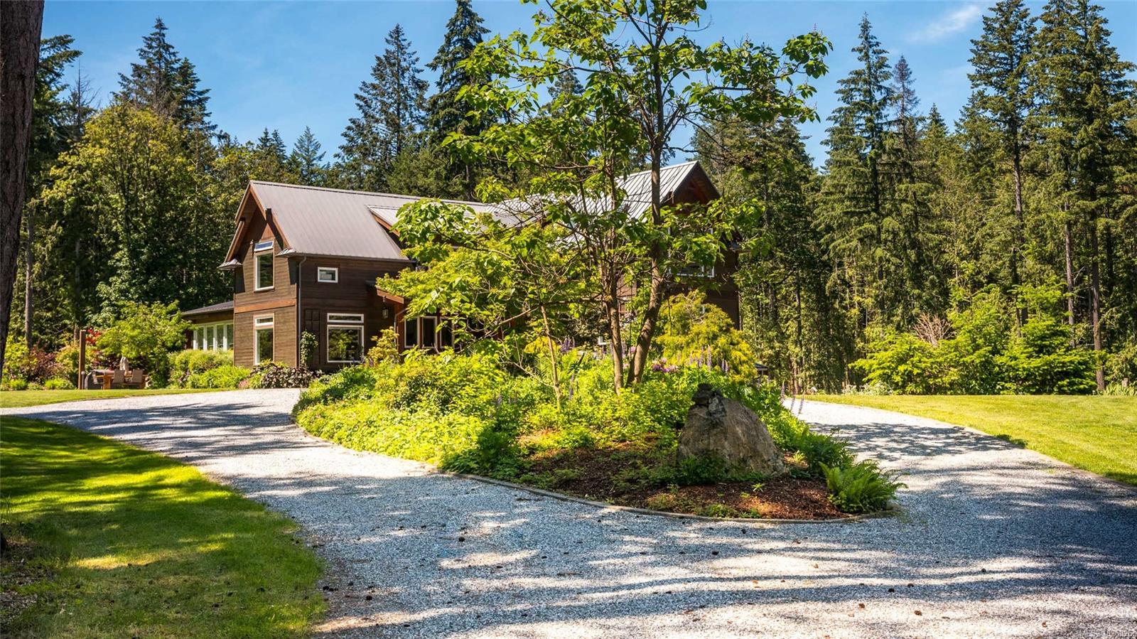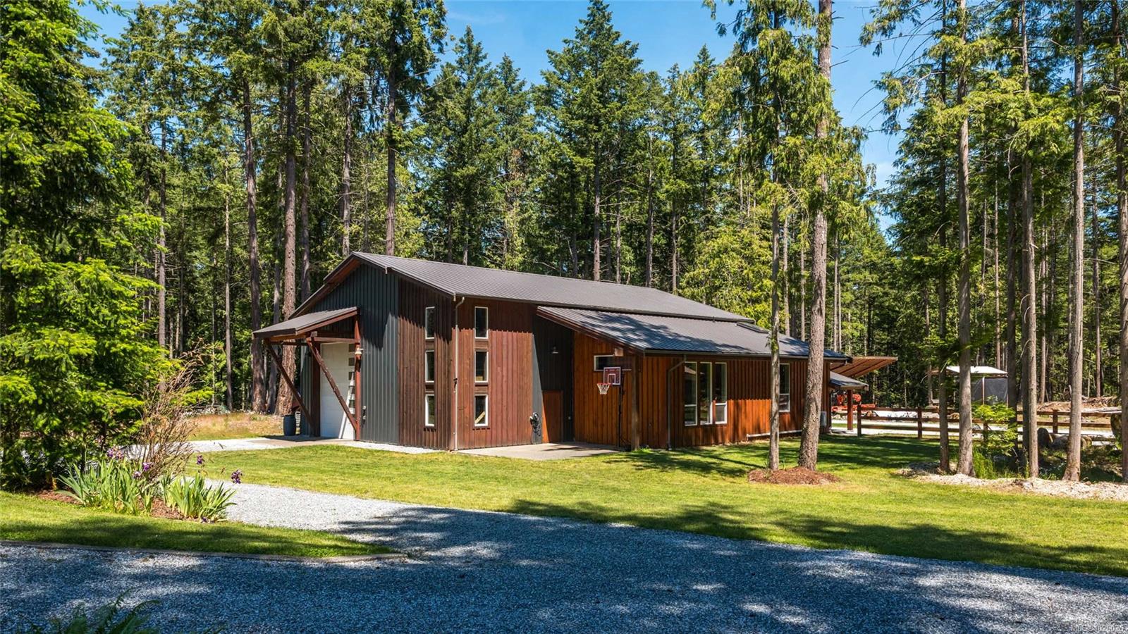 Experience exceptional Vancouver Island living on this private 37-acre estate, located in a foreign buyer ban–exempt area and within easy reach of Victoria. The 5,400sq.ft. custom home offers 6 bedrooms and 4 bathrooms, including a 1-bedroom in-law suite, with soaring ceilings, expansive windows, and beautifully crafted, light-filled interiors. Ideal for multi-generational living or group ownership, the property also features a 3,000sq.ft. shop with 18’ ceilings, dual overhead doors, and office/games room, plus a guest studio and detached cottage. Complete with pool, hot tub, barn, gardens, mature trees, open pastures, and a peaceful pond—perfect for hobby farming or equestrian use. A rare lifestyle opportunity. Full information and details available.