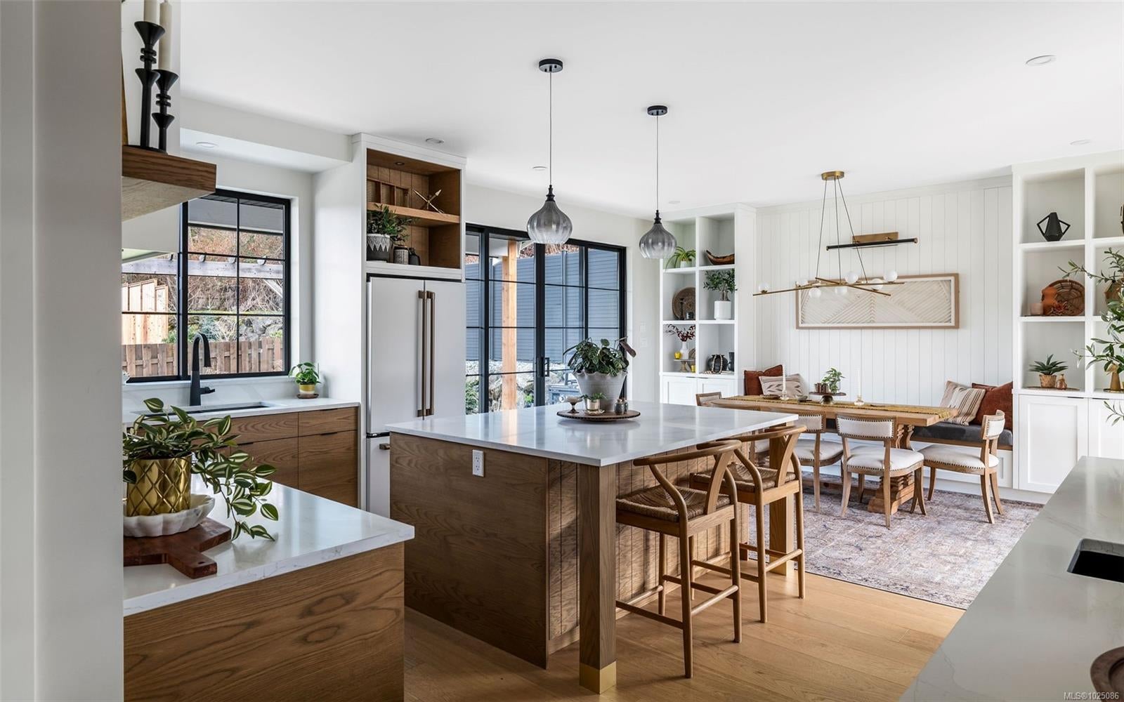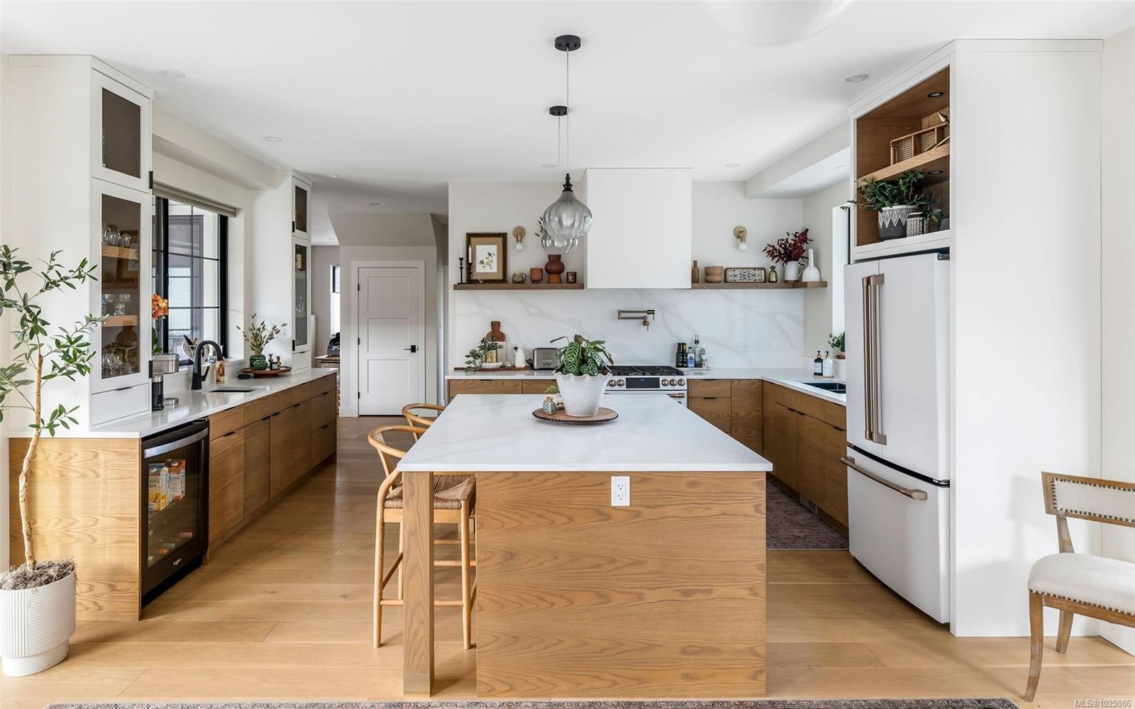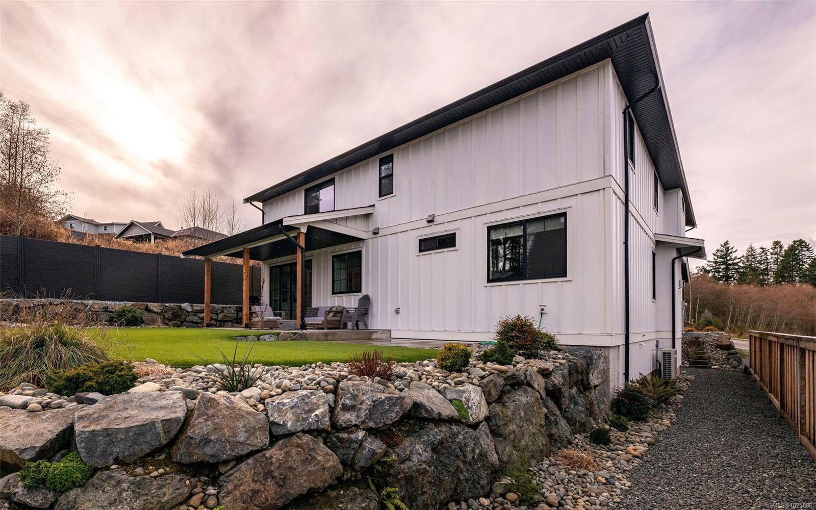 Welcome to this gorgeous, custom-built, one-owner home in the heart of Cowichan Bay. Offering 2,920sqft of beautifully finished living space, this 4 bed, 3 bath home combines quality craftsmanship with exceptional comfort. The main floor features a spacious living room with gas fireplace, a stunning custom Heronwood kitchen & an inviting dining area that’s warm & loungy—perfect for entertaining. Step out to two covered patios & enjoy seamless indoor-outdoor living, while the landscaped yard & irrigated gardens provide low-maintenance living. Also on the main level, a large pantry, laundry room, bedroom & 4pc bath—ideal for guests or main-floor living. Upstairs offers 2 more beds, 4pc bath, family room & a stunning primary with ocean/mtn views, walk-in closet & ensuite with heated floors. Additional features: engineered hardwood, 5ft crawl, attached garage, home warranty & a location close to trails, amenities & commuter routes—an exceptional lifestyle opportunity for families. No GST.