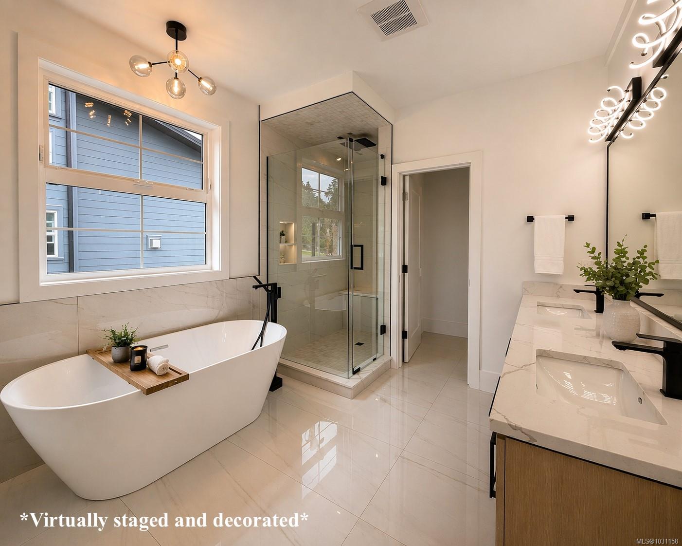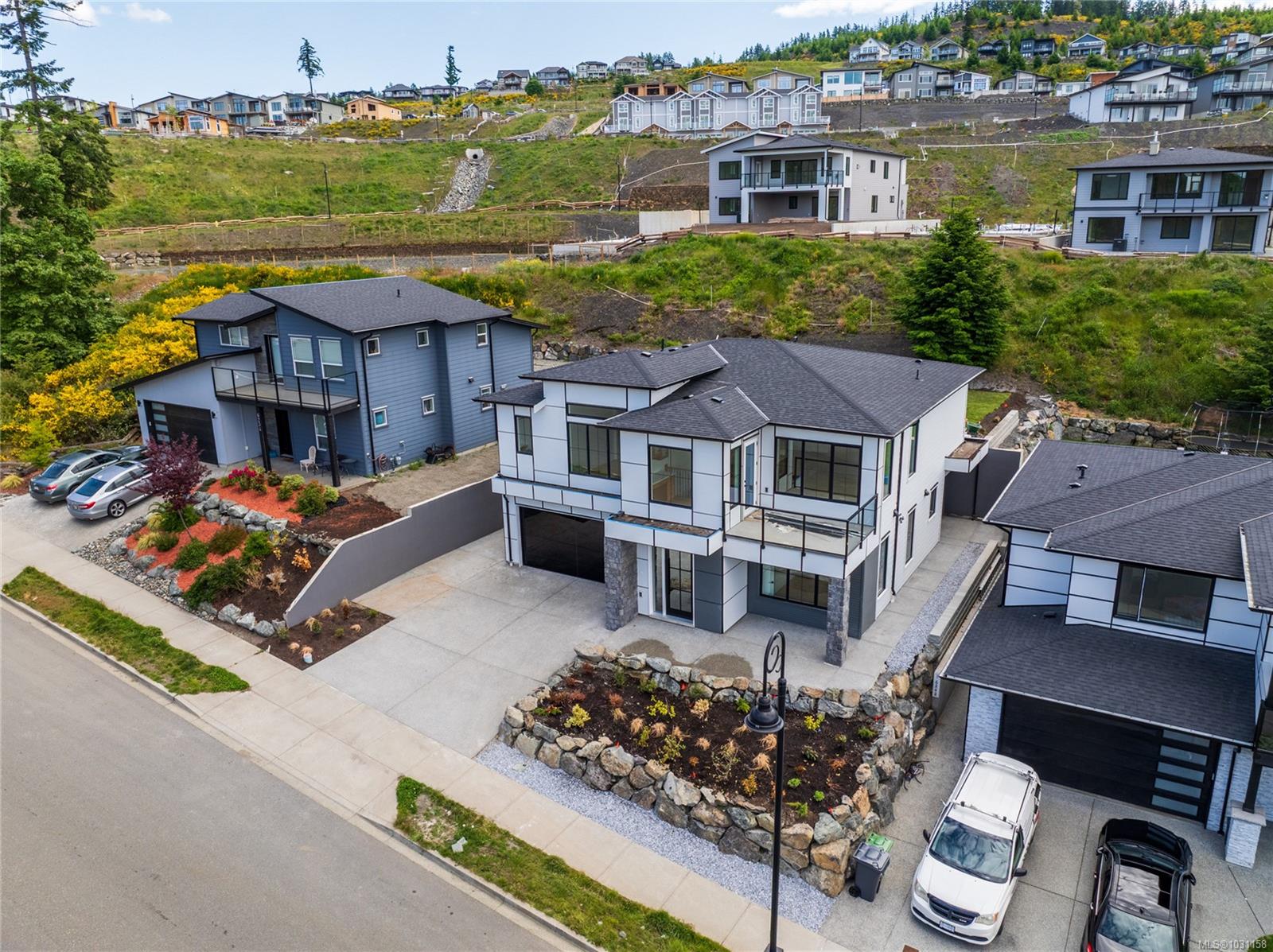 Beautifully crafted & brand new 4 bed, 3 bath 3055sq.ft home with a 2 bed LEGAL SUITE offering the perfect blend of style, comfort & efficiency. Located in a sought-after area, it delivers a welcoming, family-oriented setting just steps to Maple Bay Elementary, parks, trails & transit. Maple Bay beach & Mt. Tzouhalem are only minutes away. The main home offers 4 beds & 3 baths with bright open-concept living, soaring ceilings, engineered flooring, tiled wet areas, tray ceilings & upscale finishes. The spacious main level showcases lake & mountain views, easy access to the level backyard, fireplace, dedicated workspace, dining area & a stunning kitchen complete with coffee bar. A guest bath, laundry & 3 beds including a luxurious primary retreat with walk-in closet & spa-inspired ensuite finish this floor. The lower level features an additional bed/office, 2pc bath & a separate 2 bed legal suite. Fully landscaped with irrigation, gas tankless hot water, heat pump, heated floors & more.