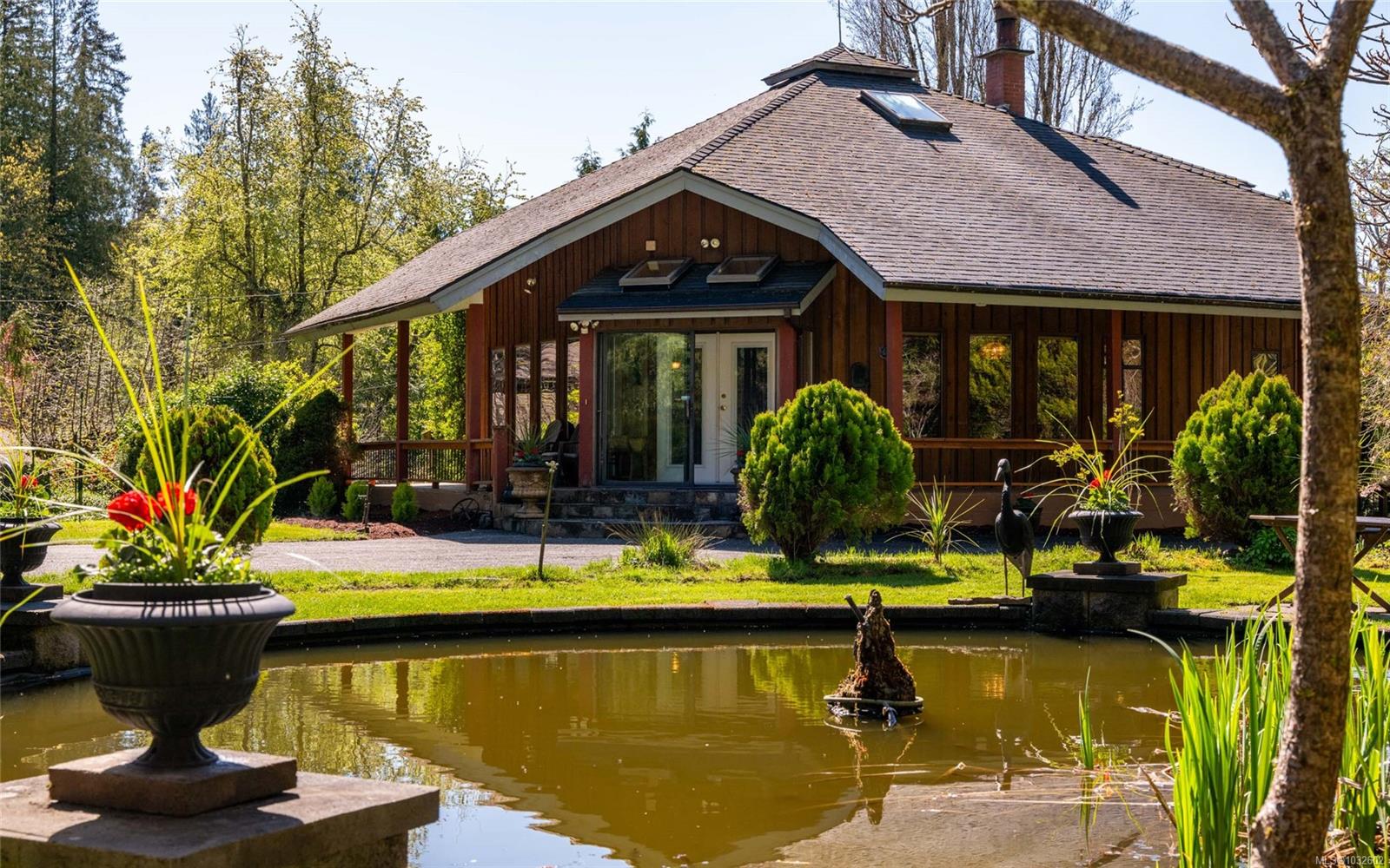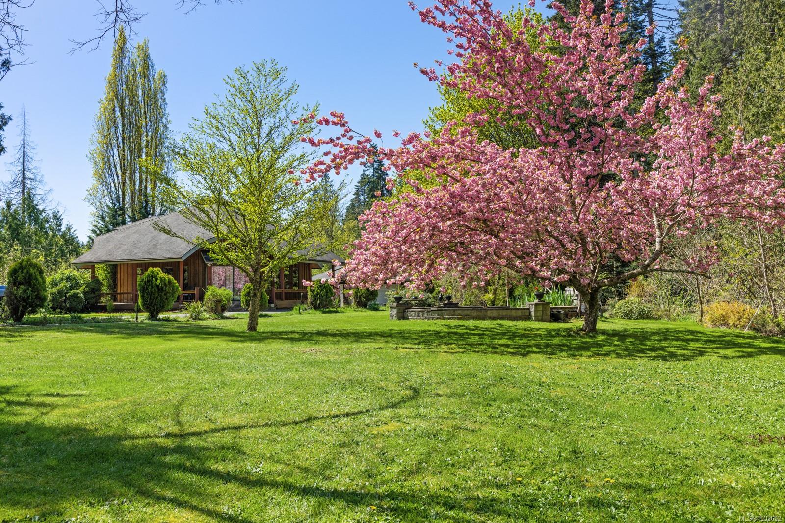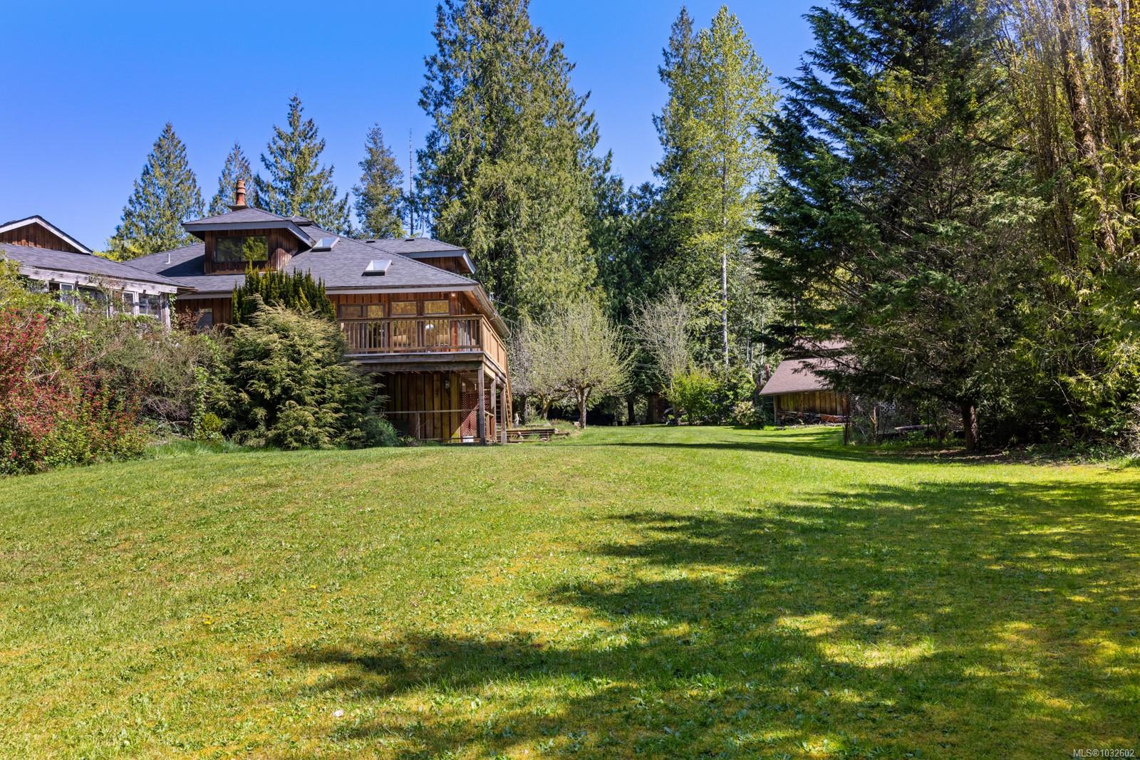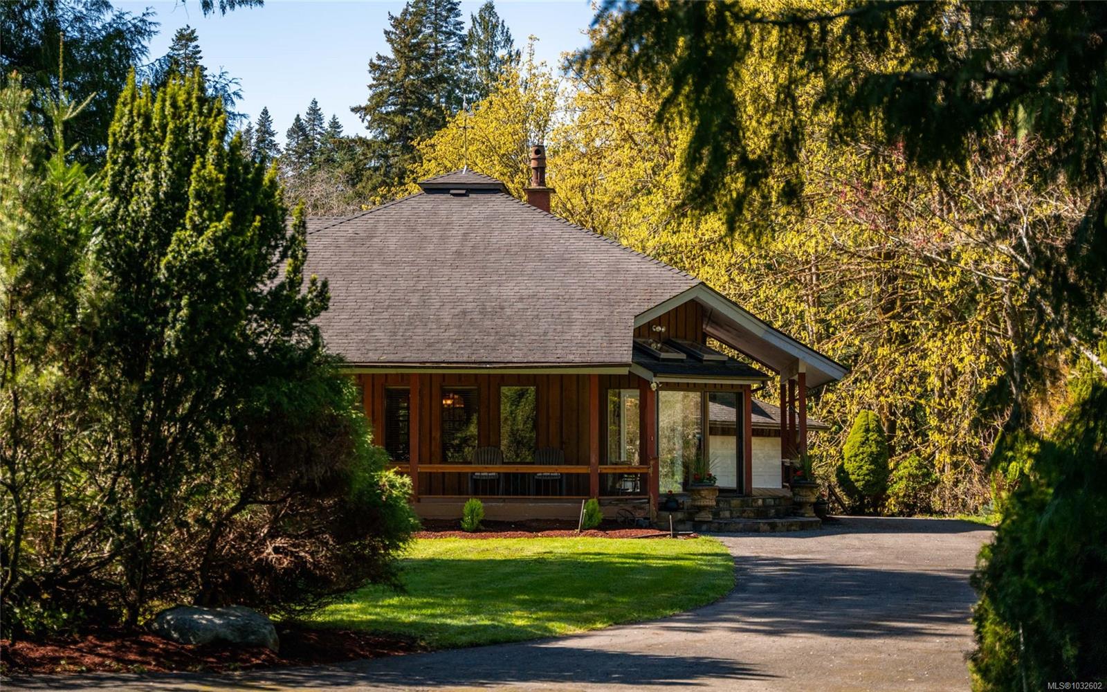 This rare, one-of-a-kind 4.8-acre property with a main home, detached 2 bed in-law cottage & a double garage is pure magic. Mature trees, established plantings & a salmon spawning creek with charming bridges set a whimsical stage against Mt Prevost. Peacefully private, yet minutes from town, this sun-drenched escape offers endless possibility. Inside the main home, find 2 main-floor bedrooms both with ensuites, a living room with a cozy wood stove, spacious dining area, inviting sunroom & an updated kitchen. Upstairs, the 1000sqft primary suite awaits with endless potential to create your sanctuary or reimagine the layout. Downstairs you will find the laundry, 3pc bath & unfinished space offering future opportunity or workshop/storage. The 2-bed, 2-bath cottage is perfect for guests or family & the attached lean-to is perfect for all your toys. This is a lifestyle canvas. Bask in the sun, create memories, & enjoy semi-rural tranquility with town at your fingertips. New water system.