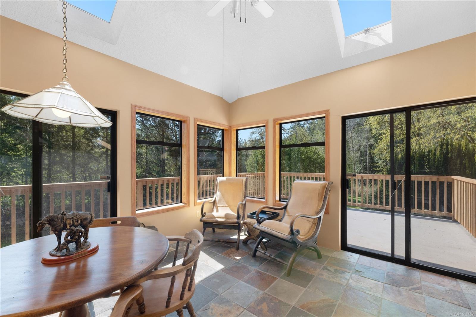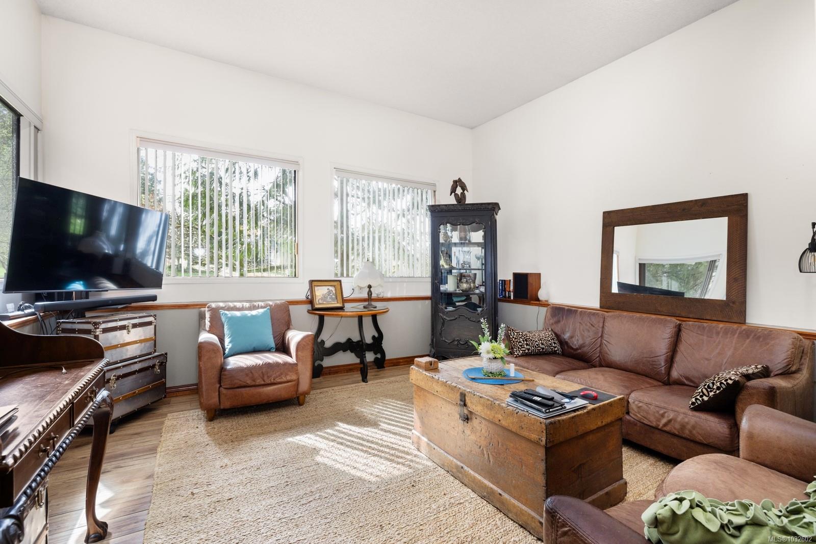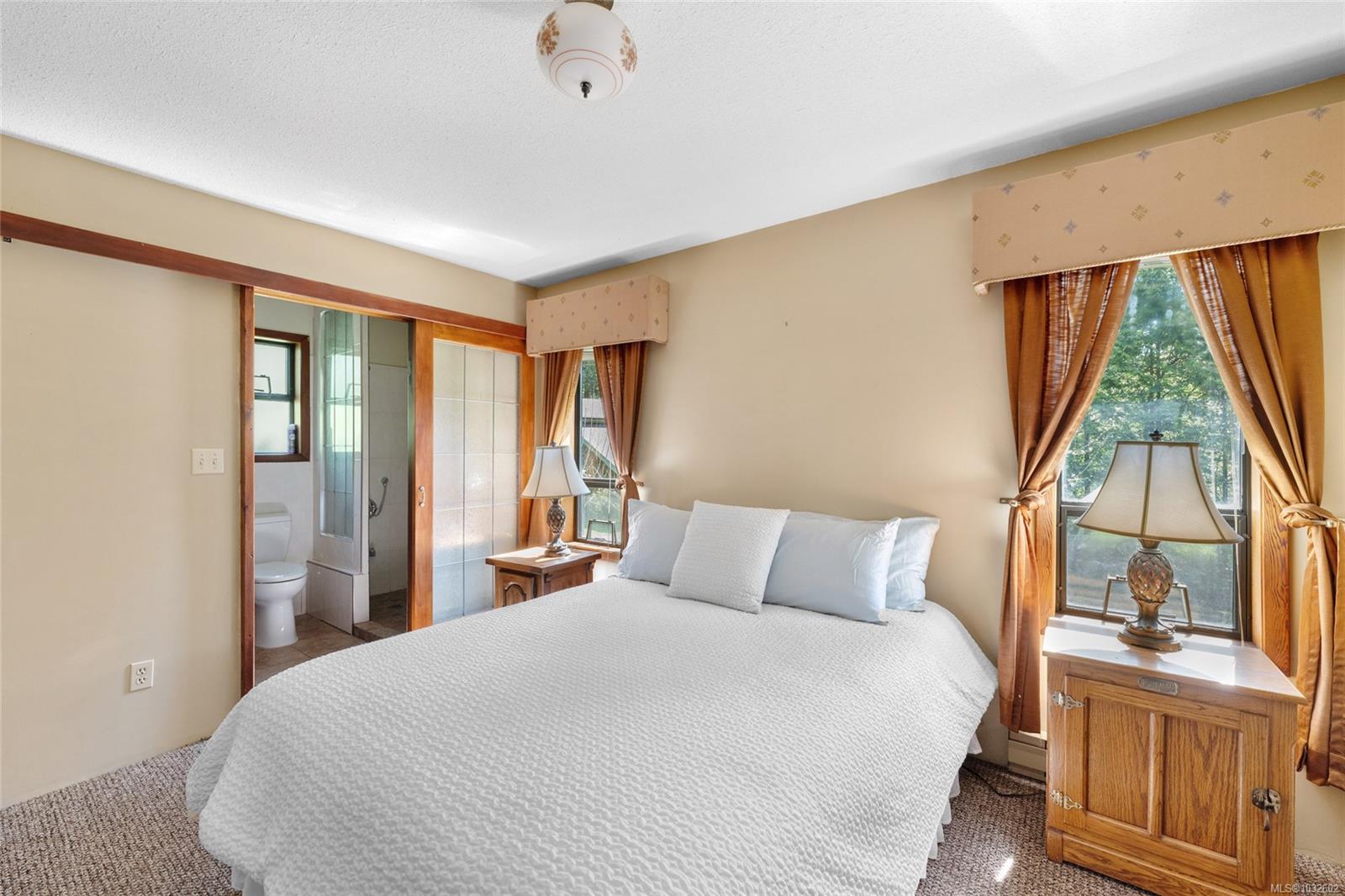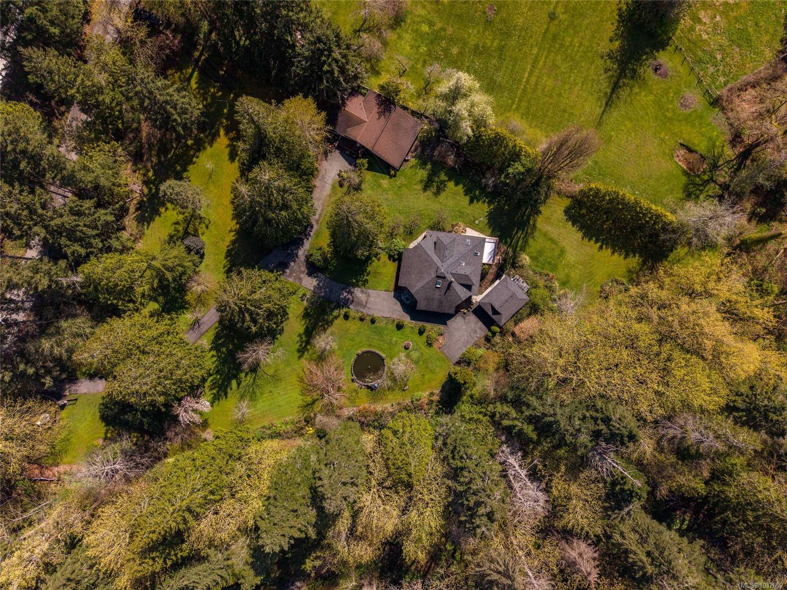 This rare, one-of-a-kind 4.8-acre property with a main home, detached 2 bed in-law cottage & a double garage is pure magic. Mature trees, established plantings & a salmon spawning creek with charming bridges set a whimsical stage against Mt Prevost. Peacefully private, yet minutes from town, this sun-drenched escape offers endless possibility. Inside the main home, find 2 main-floor bedrooms both with ensuites, a living room with a cozy wood stove, spacious dining area, inviting sunroom & an updated kitchen. Upstairs, the 1000sqft primary suite awaits with endless potential to create your sanctuary or reimagine the layout. Downstairs you will find the laundry, 3pc bath & unfinished space offering future opportunity or workshop/storage. The 2-bed, 2-bath cottage is perfect for guests or family & the attached lean-to is perfect for all your toys. This is a lifestyle canvas. Bask in the sun, create memories, & enjoy semi-rural tranquility with town at your fingertips. New water system.